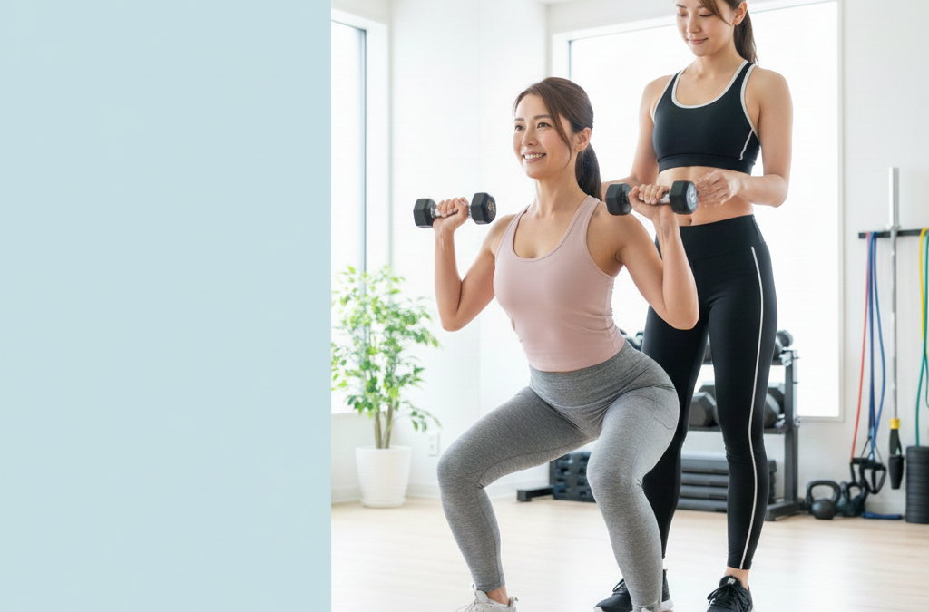 「重いダンベルを持ったら、プロレスラーみたいになりませんか?」 これは最も多い質問の一つですが、心配無用です。女性は男性ホルモン(テストステロン)が少ないため、普通にトレーニングしてもムキムキにはなれません。 むしろ、パーソナルトレーナーは**「女性らしい曲線」を作るプロ**です。ヒップアップのためにどこの筋肉を狙うか、くびれを作るためにどこを締めるか、ミリ単位のフォーム修正で理想のラインを彫刻していきます。