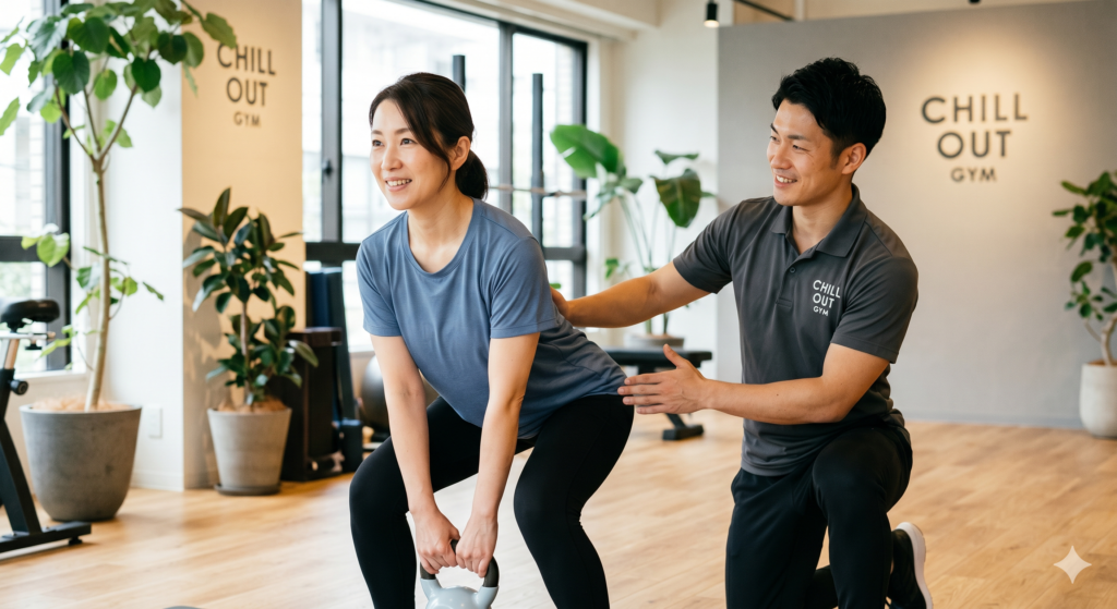 そんなあなたにこそ知ってほしいのが、理学療法士の医学的知見と、パーソナルトレーナーのボディメイク技術を融合させた新しいフィットネスの形「チルアウトジム」です。